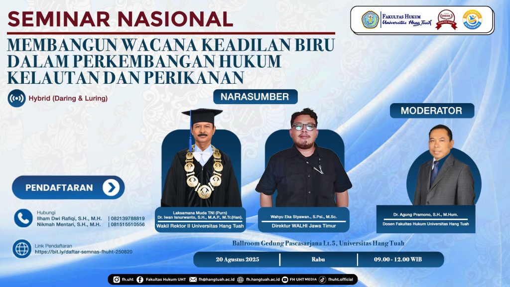 🌊 SEMINAR NASIONAL FAKULTAS HUKUM UHT 2025 “Meneguhkan Kedaulatan Hukum Laut Indonesia: Refleksi…
