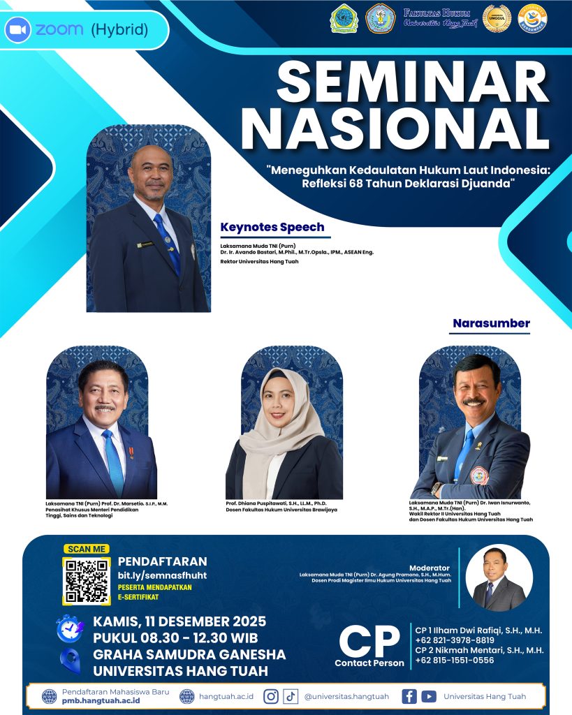 Fakultas Hukum Universitas Hang Tuah Sukses Selenggarakan Seminar Nasional: “Meneguhkan Kedaulatan Hukum Laut Indonesia: Refleksi 68 Tahun Deklarasi Djuanda”