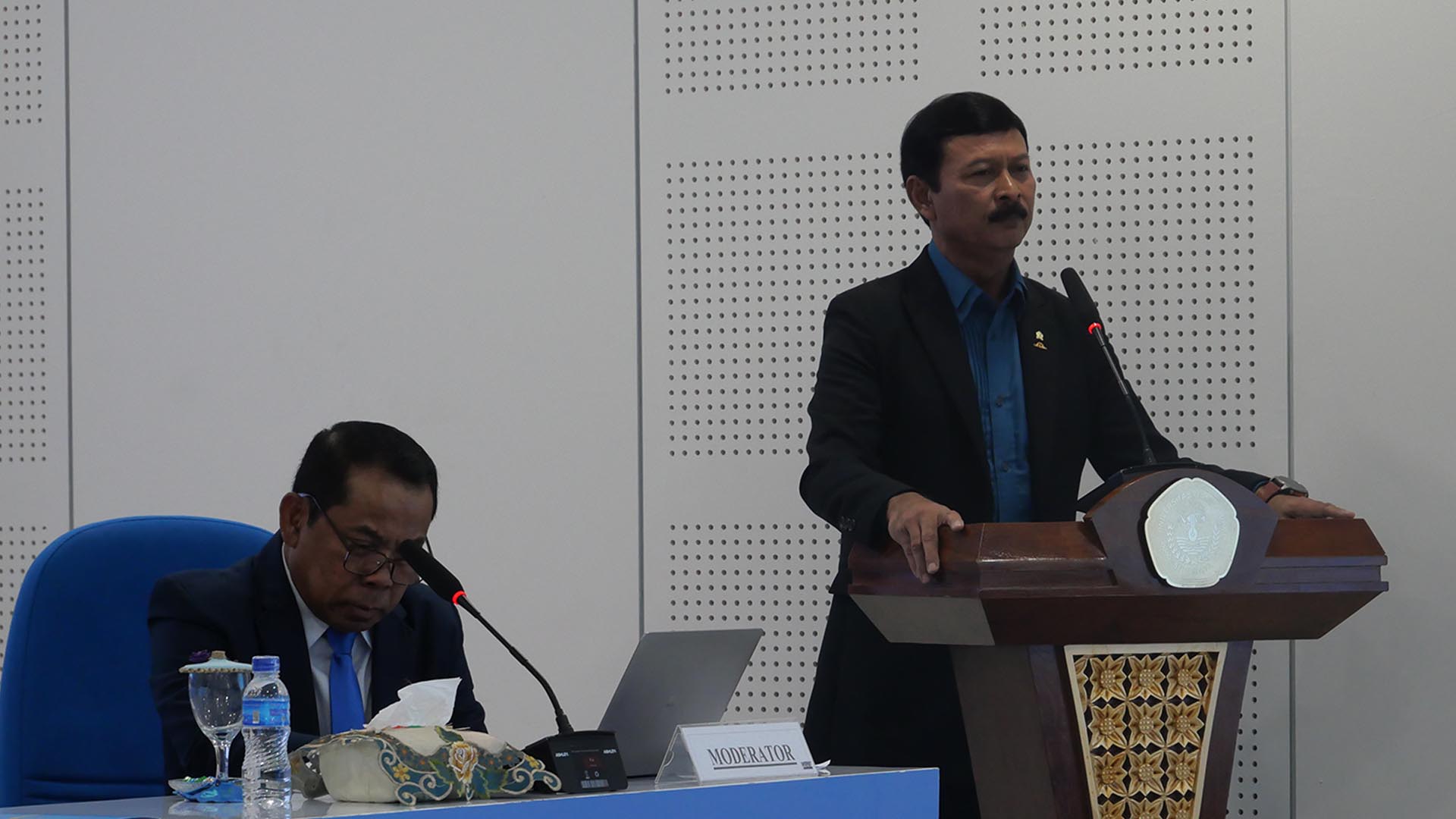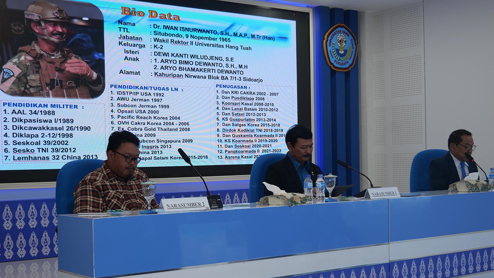 👤 Laksamana Muda TNI (Purn) Dr. Iwan Isnurwanto, S.H., M.A.P., M.Tr.(Han.) – Wakil Rektor II Universitas Hang Tuah, yang membahas perkembangan hukum kelautan dan perikanan berbasis blue justice.