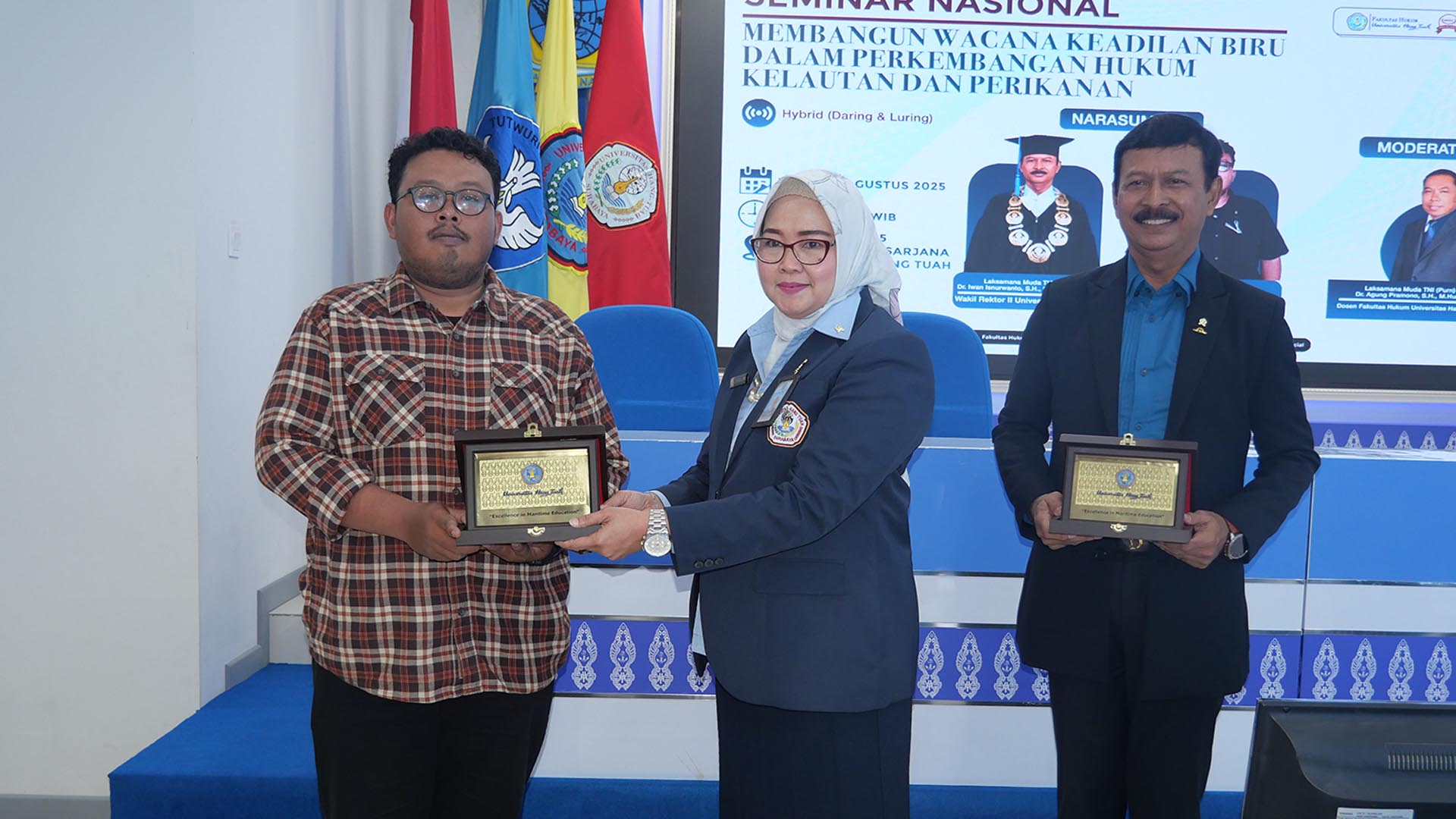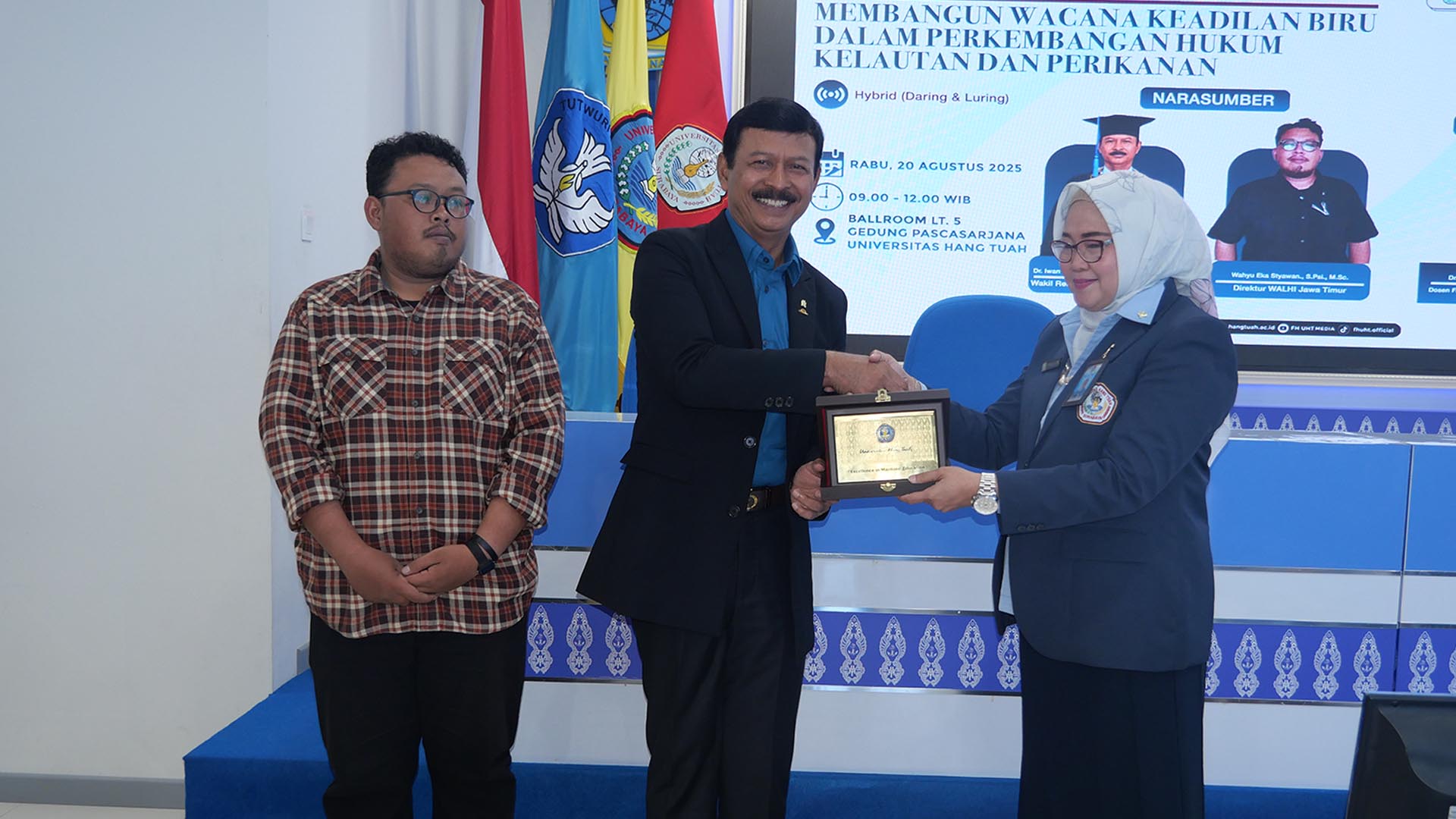 Fakultas Hukum Universitas Hang Tuah telah sukses menyelenggarakan Seminar Nasional bertema “Membangun Wacana Keadilan Biru dalam Perkembangan Hukum Kelautan dan Perikanan” pada Rabu, 20 Agustus 2025 bertempat di Ballroom Gedung Pascasarjana UHT dan juga secara daring.